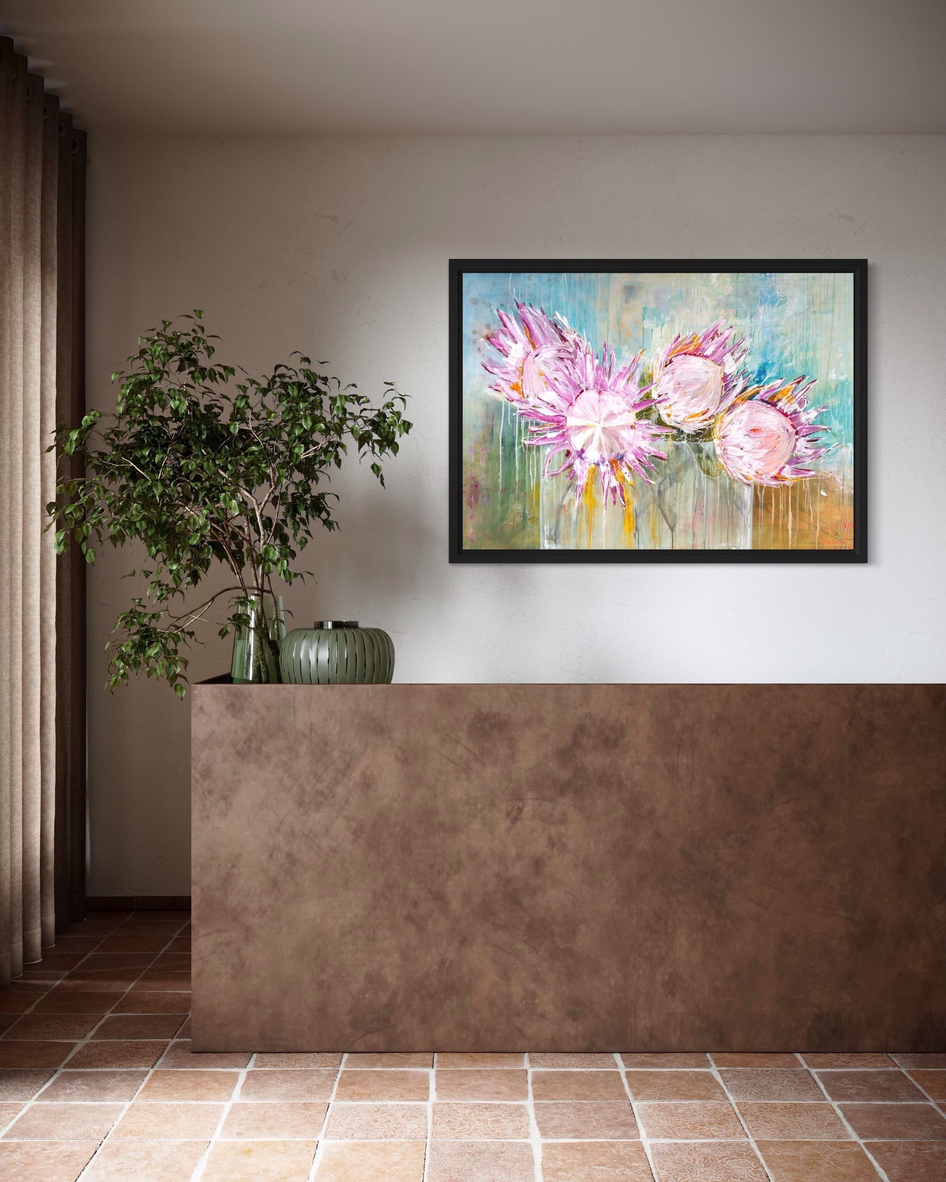 We made it easy for you by limiting our sizes to fit readymade frames that you can get from any home depo near you. However, if you want to keep it in SA check out our framing options, all hand made in our Henley Beach workshop.