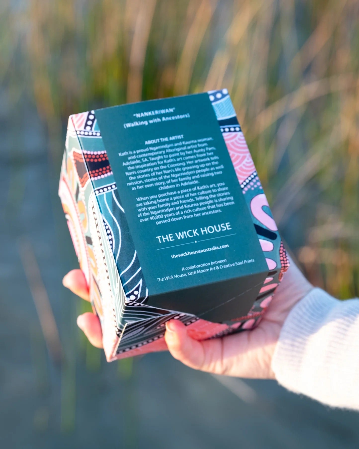 The label and box are designed with a print of the original artwork ‘Walking with Ancestors (Nankeriwan)’. My niece is on her journey, travelling from her birthplace in NSW to Victoria, back to NSW then along the river to her great grandmothers country in South Australia. With her ancestors from the Coorong guiding the way and her Dad walking beside her, she’s made her home in many places, being nurtured by family along the way, and settling in Adelaide where she is creating her best life. This journey has taken great strength and courage, she makes us proud.